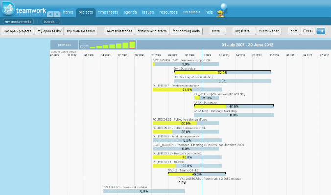 This was motivated by this request: “Manage graphical Gantt-type overview of all projects”. We then realized that all it needed was the filtering power of projects search together with a Gantt style visualization. So this is what we’ve done: we added an additioanl visualization of the search results. So for example you can see all your root open project closing in 2 weeks in a Gantt style view.