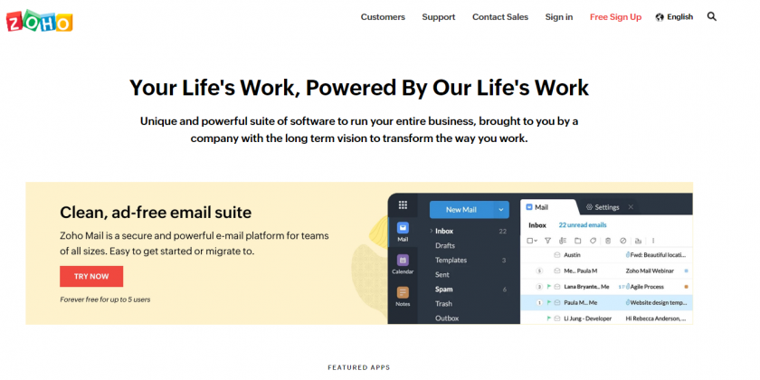 Zoho offers features dedicated to project management, customer management with its CRM and a suite dedicated to smart working