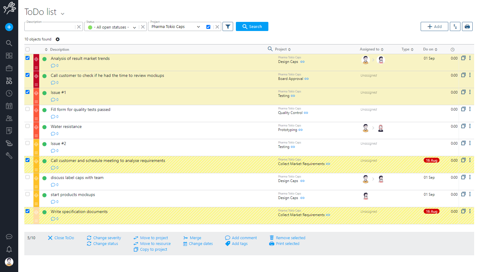 6) Move to resource: a bar will let you select a new assignee for ToDos.