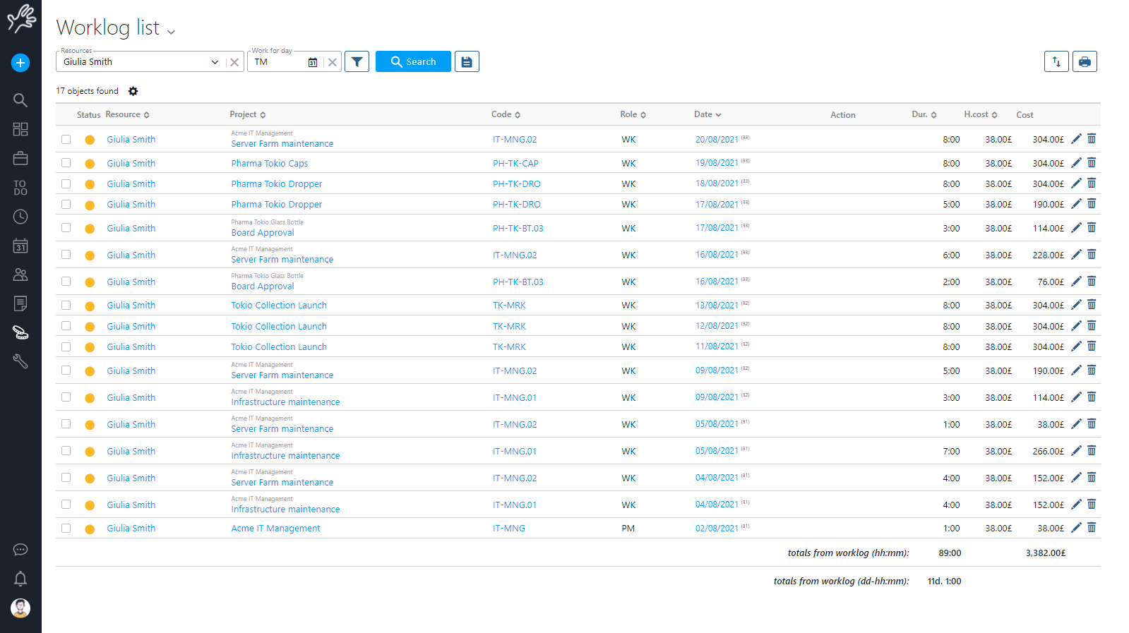Inserted work logs are really relevant for monitoring projects, so they are visible from several parts of Twproject: