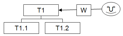 Summing up how security works, we will examine an example of how Twproject answers this question: can user U add an ToDo on phase T1.1. Here the structure of the example: