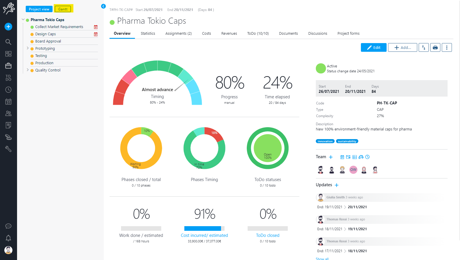 So no, Twproject is not yet another Scrum tool, it is a management tool that can help also those that decided to use Scrum for some projects. In particular we have several tools that will help tracking statistics directly in the project details page