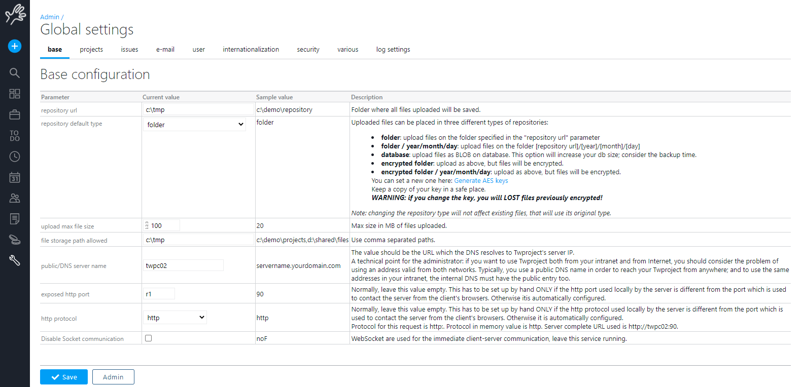 The following parameters are used for configuring how user access Twproject through the network. Proxy, firewall, https, NATting may make things incredibly complex in large organizations, but Twproject gives a good support, notice https.