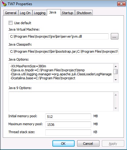 It must be said that for most usage scenarios 1GB of memory for Twproject is more than sufficient.