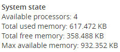 The best way to be sure that the memory configuration changes are in use in Twproject is to launch the “system check” page (admin -> system check) and verify the memory parameters there reported. For example, before:
