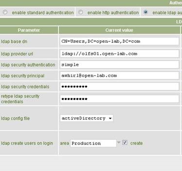 By checking LDAP radio button you will have to configure LDAP parameters.