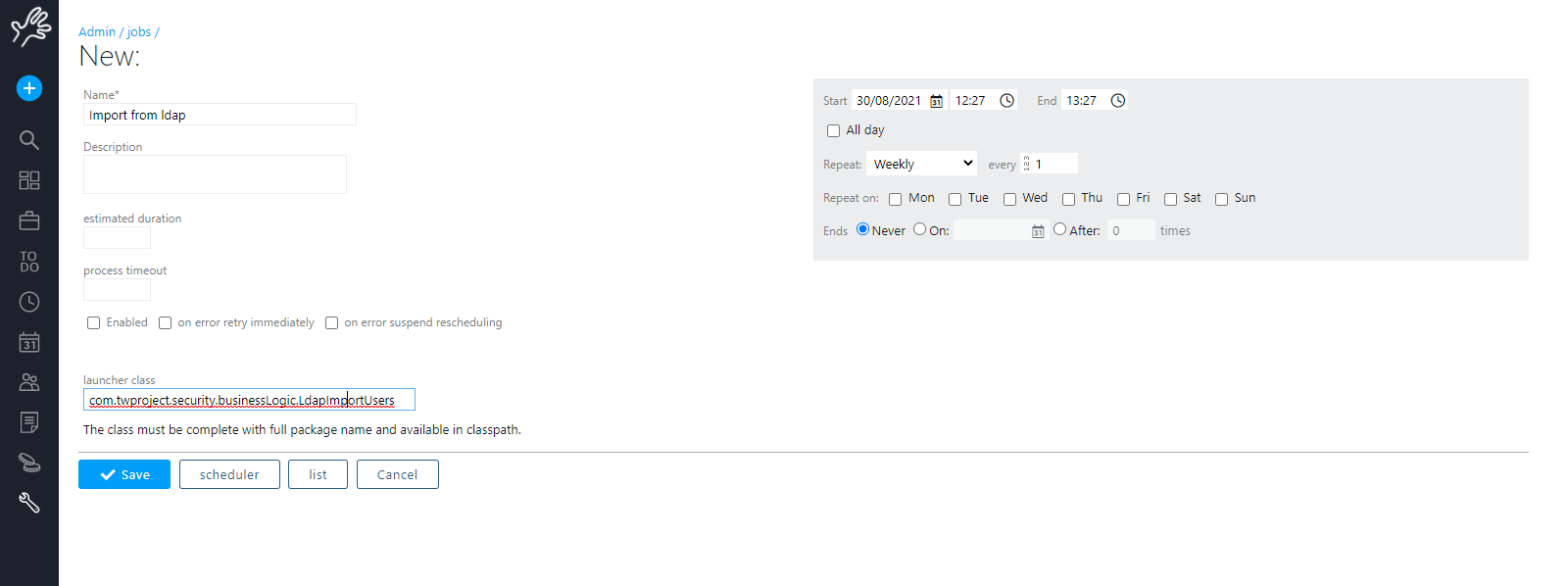 From LDAP user import click on button “see/add scheduled import”