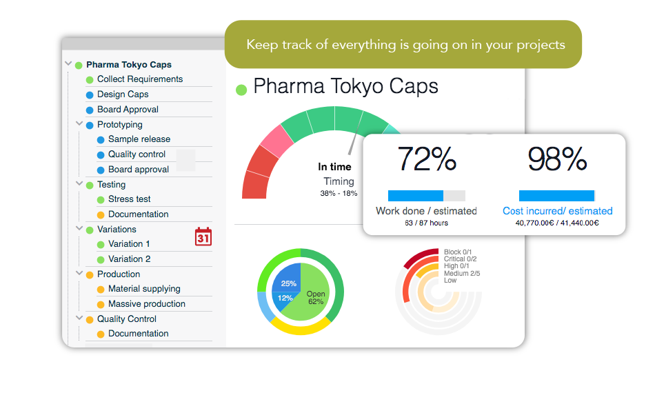 Waterfall or Agile? With Twproject you can plan your activieties following a classical waterfall approach or the Agile one. It’s up to you. With Twproject you can create complex Gantt charts or plan activities using prioritized ToDo lists. Get the best from both methodologies.