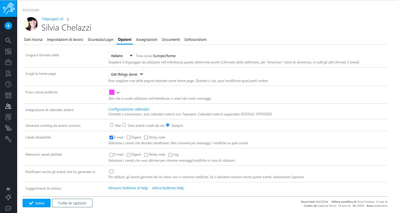 Ogni operatore può personalizzare il comportamenti di Twproject. Diamo uno sguardo alla pagina di “opzioni”: