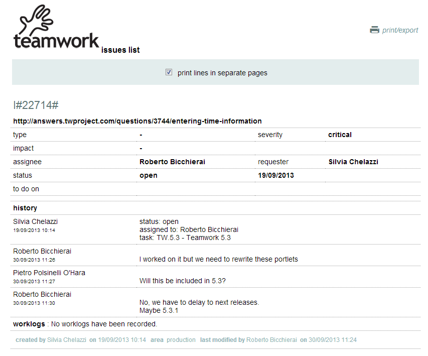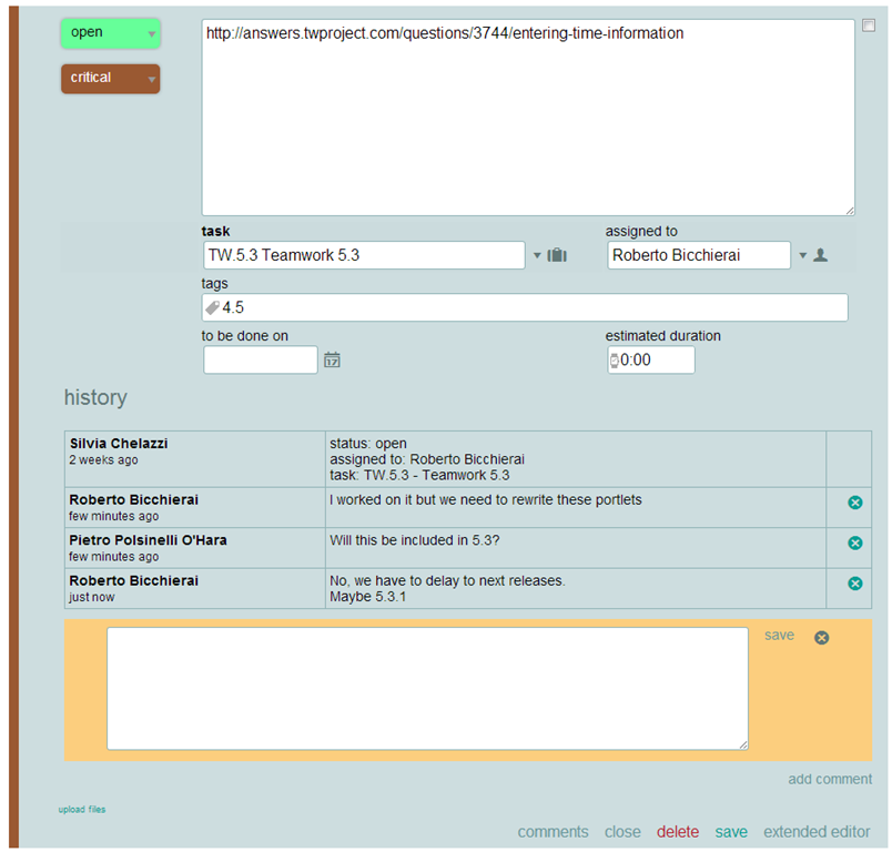 Comments has been added on issues. Team members can now add their own comment, that will integrate the issue log: