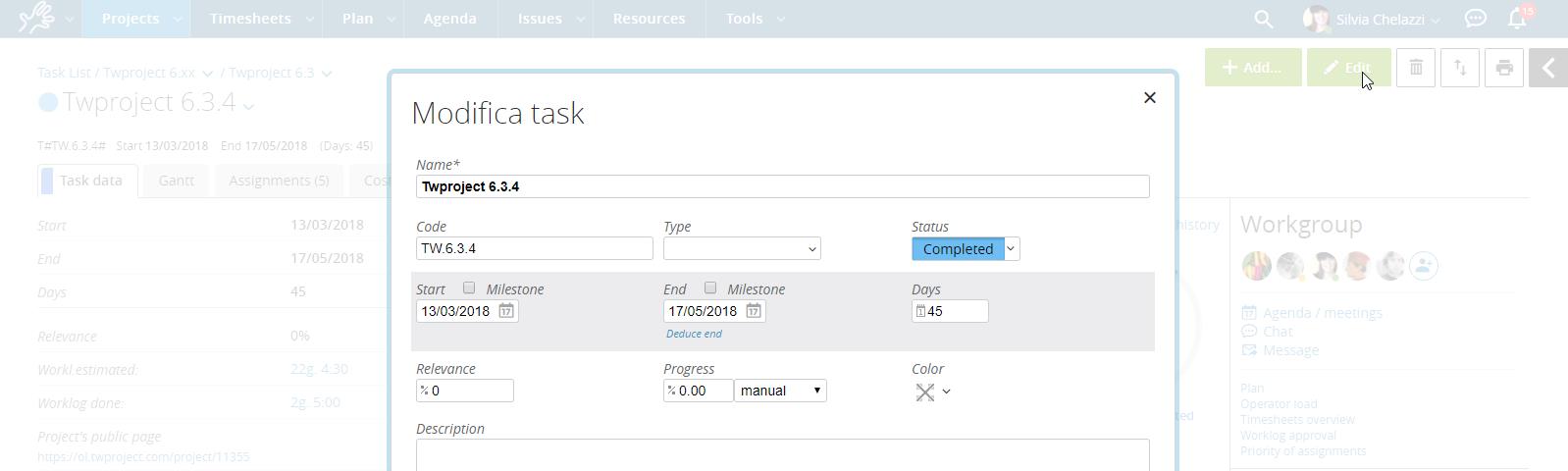 Now the page is so much easy to read, button on the right open the pop-up to change task data: