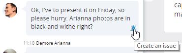 We discuss to take decisions, and decisions need to become things to do easily, with the new chat you will get just that, your boss asked you to do something? Just go on the message and click on the bug icon, issues will be created in a minute.
