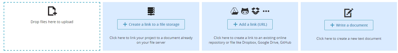 You can simply drag and drop your files to upload them in your repository, or you can create a link to an already uploaded file, available in your file server. With Twproject you even create a link with a repository available on Google drive, Dropbox, GitHub, every service exposing an URL. Last but not least you can create brand new text documents with all the information you need, authoring, versioning and locking available!