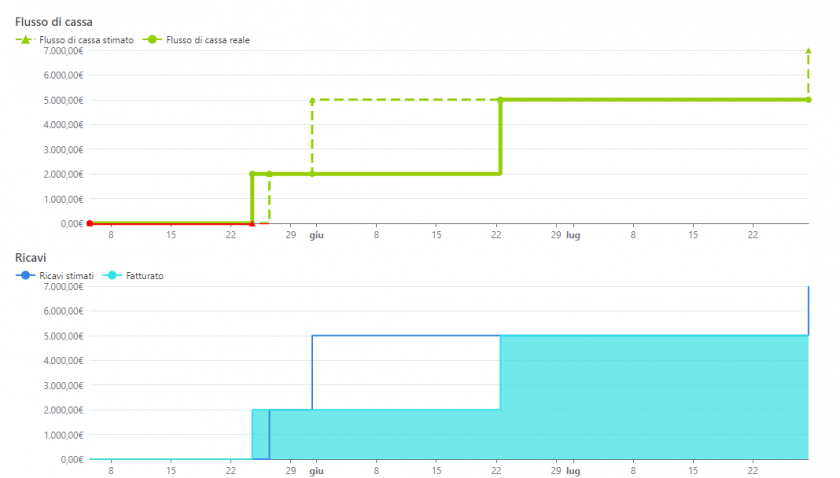In fact, as in the cost sheet, also for revenue management with Twproject you can add all the expected revenue streams, thus obtaining a probable trend of this crucial aspect.