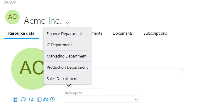 You can create a company with many departments and each department can contain as many resources (resources that can be persons or companies or departments); by structuring your company you get your organization chart and some other nice features, like team, that will be described in the following.