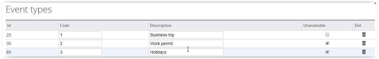 To introduce this functionality, a significant change has been made to agenda events. You will no longer find the “Unavailable” checkbox; instead, this feature has been moved to event types (the administrator can set this up under Tools -> Codes -> Event Type).