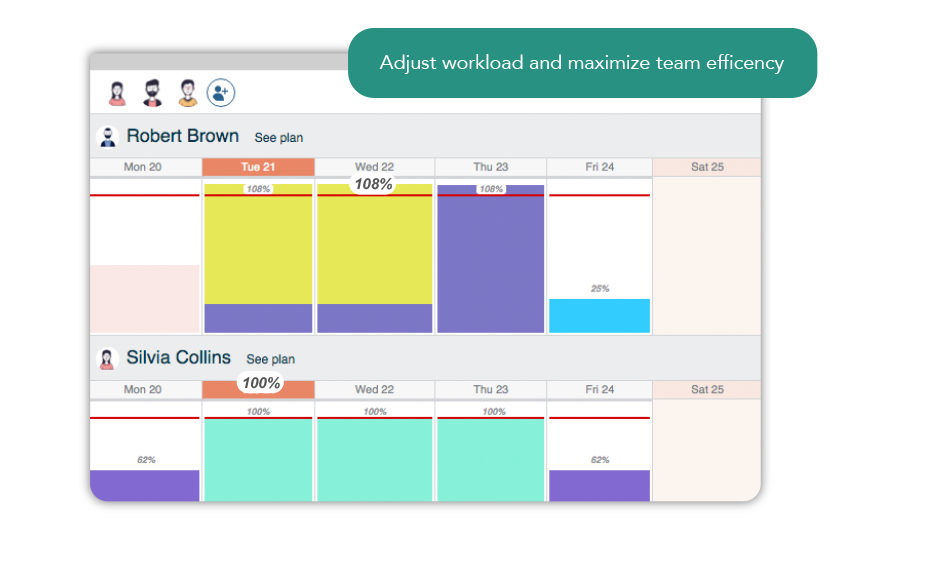 Twproject resource workload lets you instantly check and change your teams’ allocation. Overloaded resources can be easily identified. Plan “Excel-like” interface will make planning comfortable and fast. The Gantt integrated updater will let schedule properly your projects.