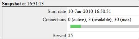 This pool has a built-in monitor, which you can enable by modifying the provided web.xml (WEB-INF/web.xml). Add among the servlets configuration