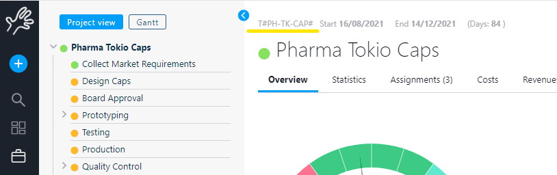 Notice in this top part of the project editor on the left that there a project internal “code”, which every saved project has: T#IDAHO#. This code allows you to link to this project editor from every other editor in Twproject. For example, if on any (other) project editor in the “description” or “deliverables” fields you write such code, this will turn into a link. In this way you can cross link any project to any other, and more – see below.