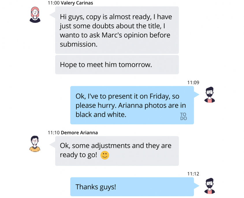 Work together to complete your tasks. Task can be assigned to multiple resources that can manage their work in autonomy. Delegate your work and accomplish more. Integrated projects chats align your team on the same path. Share documents, notes, ToDo with your team. Boost your productivity together.