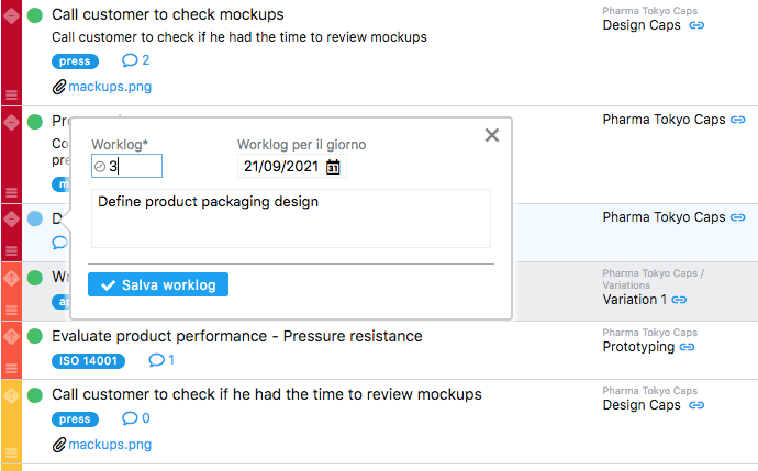 Twproject lets you insert worklog while your are working. It will adapt to your habits with no extra effort. Are you closing your ToDo? Register worklog with just an additional click. Done!