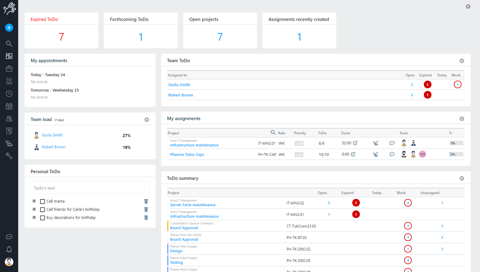 Nel banner in alto della homepage hai sempre in evidenza i ToDo scaduti, quelli da fare oggi o quelli prossimi.
