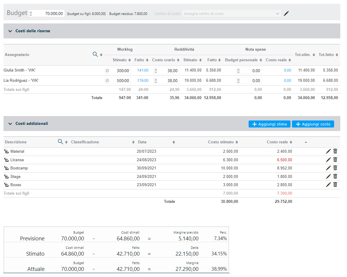 - Real-time cost monitoring: Twproject allows access to work logs and updated estimates, providing a clear and up-to-date view of actual and estimated project costs.
