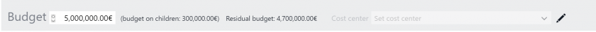 In order to better manage finances, Twproject shows for each node the budget allocated to all its sub-phases, if any, as well as the residual usable amount (value given by the budget on the phase minus what is allocated to the sub-phases and the costs of the phase itself).