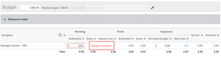 Note that this ban does not take into account budget overruns (provided the functionality is active), but only the estimate on the allocation; this is to avoid blocking normal work activities in the event of changes in the hourly cost of resources.