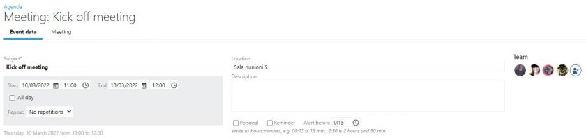 Usando un software di gestione progetti come Twproject, che integra il progetto ad una agenda condivisa, è possibile creare dei meeting assegnati alle risorse convolte e collegati al progetto con i punti di discussione e la minuta della riunione!