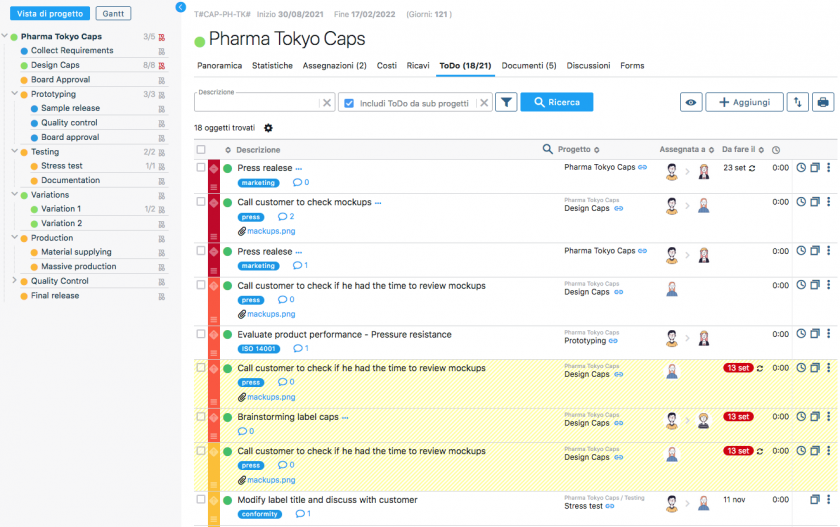 Con Twproject per esempio, dopo aver suddiviso il progetto in fasi e assegnato le risorse corrette su ogni fase, potrai aggiungere tutti i task con la giusta priorità, ognuno saprà cosa fare ed entro quando.
